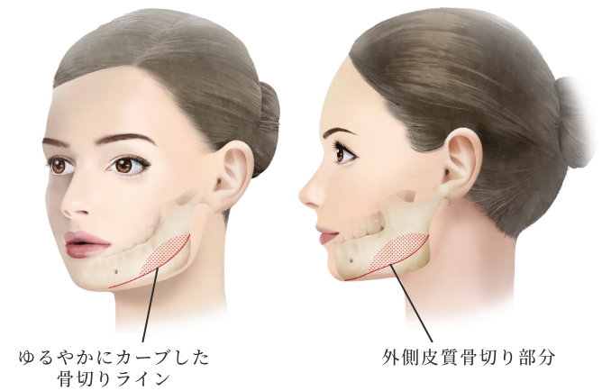 顔面輪郭形成はあらゆる美容外科手術の中で最も難しく、非常に専門的な分野と言われ、高い技術と知識が要求されます。当院の顔面輪郭形成は、院長が長年の経験を元にたどり着いた独自の手法です。術後の皮膚のたるみ予防する骨膜の縫縮や骨切りの面積が大きいことが特徴です。